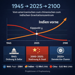 1945 → 2025 → 2100 – Vom amerikanischen zum chinesischen zum indischen Gravitationszentrum Mein Statistiker‑Herz lacht. Nicht, weil „mehr Menschen“ per se gut wären (das...